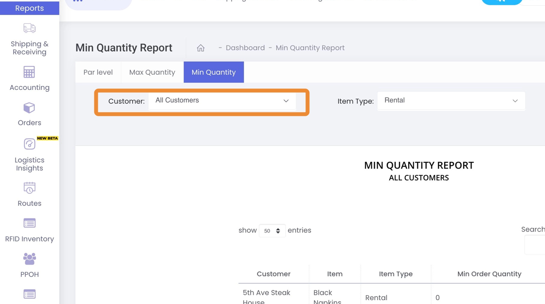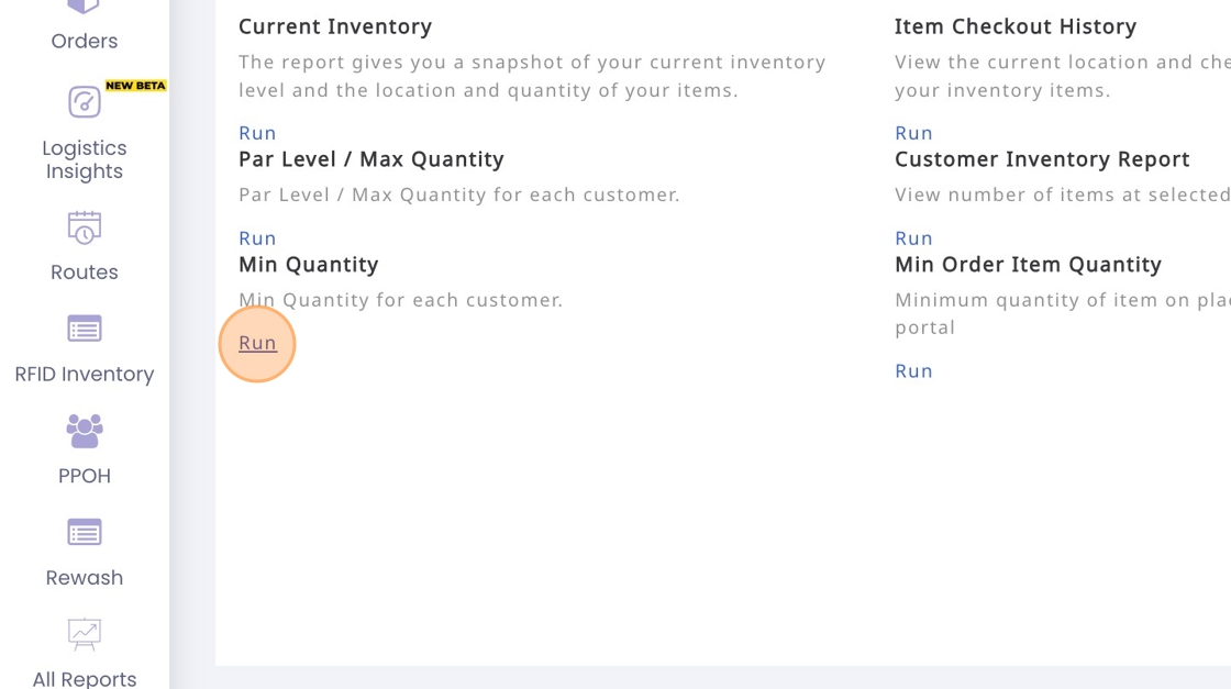 7. Once the customer profile is set up correctly, make sure the minimum quantities are configured for that customer. To do this, go to the 'All Reports' section.