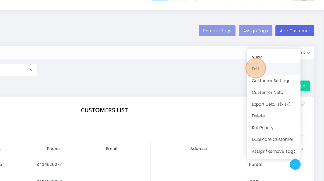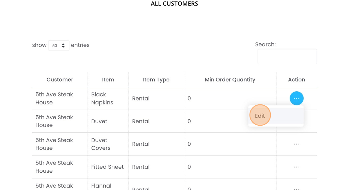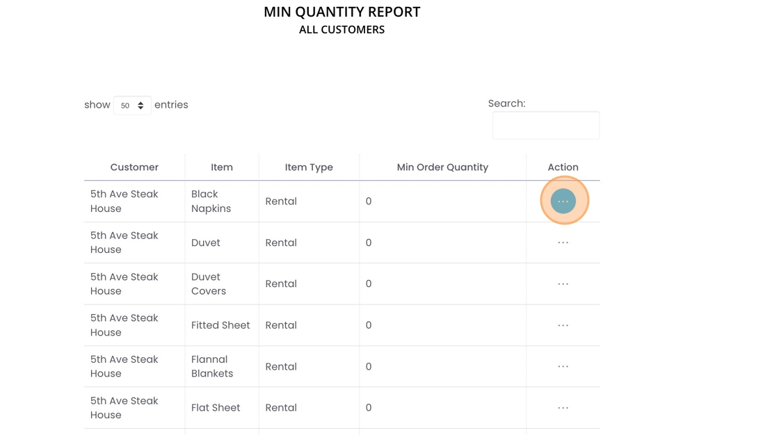 3. Click on three dots next to the customer you wish to bill for the minimum quantities.