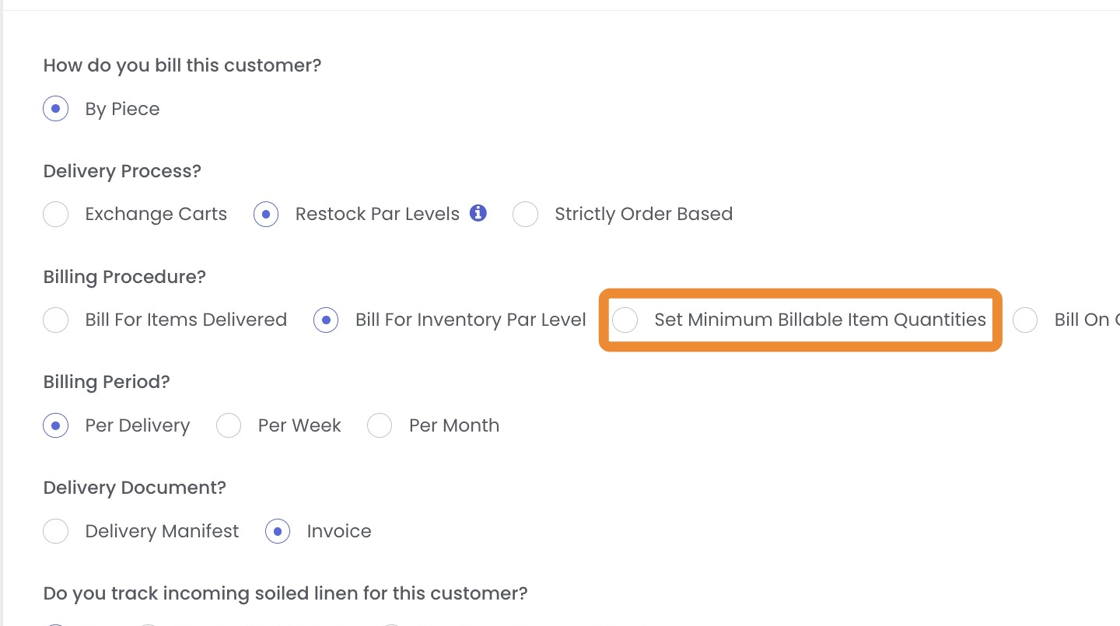 6. Change the Billing Procedure to "Set Minimum Billable Item Quantities".