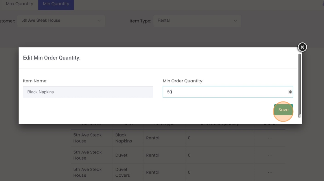 11. Click the three dots next to each item to add or update its minimum quantity.